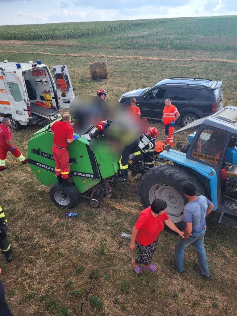 Incidentul extrem de grav s-a petrecut în localitatea Văleni, comuna Pădureni. Un bărbat în vârstă de 41 de ani și-a prins brațul într-un dispozitiv pentru formarea baloților folosiți în furajarea animalelor. Când salvatorii au ajuns la fața locului, bărbatul prezenta multiple traumatisme ale membrului superior drept, fiind conștient și cooperant. S-a procedat la extragerea victimei, apoi a fost evaluată și i s-a acordat primul ajutor. Ulterior, bărbatul a fost transportat de echipajul ambulanței SAJ Vaslui către elicopterul SMURD care a aterizat în zonă și care l-a transferat către o unitate medicală de specialitate din Iași.