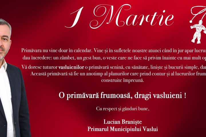 Mesajul primarului Lucian Braniște cu prilejul zilei de 1 Martie comitetulcentral·February 27, 20260 Comments